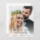 Elegante und preisgünstige Veranstaltung oder kleine Hochzeitsankündigung und Empfang Einladung. Die Vorderseite zeigt Ihr Hochzeitstag-Foto mit "Happily Ever After Party" in einer Mischung aus einfacher moderner Typografie und einem stilvollen Drehbuch mit Swashes. Fügen Sie unter Ihrem Foto Ihre Vornamen und Ihr Hochzeitstermin hinzu. Auf der Rückseite personalisieren Sie Ihre Nachrichten-, Party- oder Empfang-Daten und fügen Ihre Namen in ein signaturartiges Skript ein.