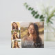 Moderner budgetfreundlicher Abschluss danken Ihnen, das Foto des Absolventen mit einem Streifen von drei kleineren quadratischen Fotos, "danke" in einem stilvollen weißen Drehbuch, und ihren Namen, Schule und Klasse Jahr in der einfachen weißen Typografie. Auf der Rückseite personalisieren Sie eine Danksagung und fügen den Namen des Absolventen in ein signaturähnliches Skript hinzu.