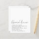 Budget Skript Schwarz-weiße Probe Abendessen Ein Budget Preis SMALLER 4.5" x 5.6" Alternative. Erhältlich in einem SEMI GLOSS 110lb CARD STOCK ). Der Header ist in einem Set elegante Handschrift Stil mit den Details unten. Viel Weiß an der Spitze für ein zeitgenössisches Ambiente! Personalisieren Sie sich einfach mit Ihren Informationen.