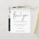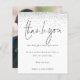 Silver Glitzer Script Foto Hochzeit Vielen Dank. Ein Preis SMALLER 4,5" x 5,6" Alternative. Erhältlich in einem SEMI-GLOSS 110 lb CARD STOCK, der die Standardoption (dicker für Einladungen) ist, ODER einem SATIN FINISH 80 lb THINNER PAPER STOCK (ideal für Gehäuse). Umschläge sind optional und etwas größer als die Kartengröße. Ein minimalistisches Typografie-Design mit einem Set-Stilskript für Dankeschön. Auf der Rückseite ersetzen Sie das Beispielbild mit Ihrem eigenen Favoriten aus Ihrem Tag, um Ihre Gäste zu schützen. Personalisieren Sie die Erholung des Textes einfach mit Ihrer Nachricht und Ihren Namen.