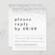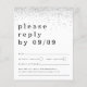 Budget Silver Glitzer Confetti Wedding RSVP.A Budget Preis SMALLER 4.5" x 5.6" Alternative. Erhältlich in einem SEMI GLOSS 110lb CARD STOCK, welches die Standardoption ist (empfohlen für Einladungen), ODER einem SATIN FINISH 80lb THINNER PAPER STOCK (ideal für Gehäuse). Umschläge sind optional und etwas größer als die Kartengröße. Der Header ist unten groß in stylischen Kleinbuchstaben mit den Details unten mit einem silbernen Imitat Glitzer Rand oben auf jeder Seite. Personalisieren Sie den Text einfach auf Ihre eigenen Daten.
