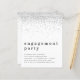 Eine günstige BUDGET-Alternative für eine kleinere Größe von 4,5 x 5,6 Zoll, die ein Gewicht von 110 lbs hat, die ähnlich dick ist wie eine Postkarte (sie ist jedoch nicht als Postkarte geeignet). BITTE BEACHTEN SIE, DASS ES EINE Einladung pro Blatt gibt. Silver Glitzer Engagement Party Invite.Der Header ist groß in stilvollen Kleinbuchstaben mit den Details unten. Viel Weiß an der Spitze für ein zeitgenössisches Ambiente! Personalisieren Sie den Text einfach auf Ihre eigenen Daten.