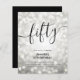 Elegantes Glam Silver Glitzer Lights 50. Geburtstagsschreiber-Einladungsvorlage mit funkelnden Lichtern und modernem Typografie-Skript.