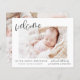 Budget Simple Baby Announcement Elegant Foto Collage, die ein Foto auf der Vorderseite und 4 Bilder auf der Rückseite haben. Die Karten enthalten eine moderne, handgeschriebene, kursive Schriftzeichen-Typografie, die elegant, einfach und modern für einen Neugeborenen oder ein Kindermädchen ist, das von der Mutter und dem Vater des Säuglings an Familie und Freunde verschickt wird.