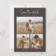 Budget Simple Calligraphy Script Modern Four Foto Save the Date verfügt über ein Trio von Fotos auf der Vorderseite, zusammen mit modernen, minimalen Typ. Ein Single großes Foto auf der Rückseite, mit Ihrer Hochzeitswebsite.