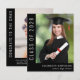 Einfache und elegante, preisgünstige Ankündigung von Black Abschluss mit moderner weißer Typografie. An der Vorderseite befindet sich ein Foto Ihres Absolventen, das Schuljahr sowie sein Name und seine Schule. Auf der anderen Seite, fügen Sie ein zusätzliches Foto, eine Botschaft der Glückwünsche und eine persönlichere Botschaft wie die Pläne des Absolventen.