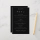 Einfache Typografie White Black Wedding Menü. Die Preisgröße beträgt 5,5" x 8,5", Sie können auch den Schriftart-Stil und die Farben und die Hintergrundfarben auf der Vorder- und Rückseite ändern, wenn Sie über die Option Klicken, um weitere Einstellungen zu vornehmen.