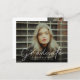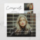 Dieses moderne, elegante Foto Abschluss Einladungs-Combi bietet ein Script-Graduate-Overlay und individuell anpassbaren Namen, Schule und Foto an der Vorderseite. Die Rückseite bietet Glückwünsche und Veranstaltungsdetails mit weiteren 3 Fotos. Eine tolle Art, Ihren Absolventen zu präsentieren.