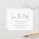 Skript QR-Code Hochzeit speichern Sie das Datum. Ein Preis SMALLER 4,5" x 5,6" Alternative. Erhältlich in einem SEMI-GLOSS 110 lb CARD STOCK, der die Standardoption (dicker für Einladungen) ist, ODER einem SATIN FINISH 80 lb THINNER PAPER STOCK (ideal für Gehäuse). Einfache Eleganz mit Save the Date in einem modernen Set-Skript.Die Erholung des Textes können Sie leicht personalisieren. Mit Ihrem QR-Code auf Ihrer Hochzeitswebsite auf der Rückseite. Hier in schwarz auf weiß dargestellt können Sie jedoch Text- und Hintergrundfarben ändern, wenn Sie es wünschen, indem Sie über die Option Weitere Einstellungen vornehmen.