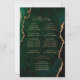 Dieses elegante, moderne Hochzeitsprogramm verfügt über einen smaragdgrünen Achat-Hintergrund, der mit goldenem falschen Glitter besetzt ist. Der Text erscheint in goldfarbener Handschrift und Kupferstich-Schriftarten.