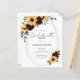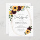 Diese Einladung zum Junggeselinnen-Abschied ist ideal für ein Party mit Sonnenblumen. Die Einrichtung umfasst Sonnenblumen in Aquarelltönen und bordeauxfarbene Rose mit schlankem Eukalyptusgrün und goldenem Rahmen. Personalisieren Sie Ihre Party mit allen Details.