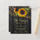 Rustikale Hochzeitsfeier auf dem Land und eine preisgünstige Einladung zum Empfang auf dunkelbraunem Stallholzhintergrund mit großen goldgelben Sonnenblumenbouquets, Streichern aus bunten Lichtern und einer goldenen Typografie-Schrift für Imitate. +++++++ Wenn Sie ENVELOPES benötigen, wählen Sie bitte ENVELOPE aus! +++++++++++ Einfach mit Ihren Daten personalisieren! +++++++++++++++ Die Einladung ist für rustikale Hochzeiten im Garten im Garten geeignet.