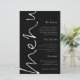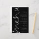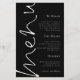 Dieses moderne Schwarz-Weiß-Design hat Menu in elegantem Set-Skript, das auf der links Seite läuft und die Erholung des Textes auf der rechten Seite ausgerichtet ist, die Sie leicht personalisieren können, sowie Ihre Namen und das Hochzeitdatum auf der Rückseite. Text- und Hintergrundfarben auf beiden Seiten können über die Option Weitere anpassen auf jede beliebige Seite geändert werden.