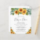 Diese rustikale, preisgünstige und geschlechtsneutrale Baby-Sprinkle-Einladung umfasst Aquarellbouquets mit Sonnenblumenblumen und Eukalyptuspflanzen und "Baby in Bloom" in einem stilvollen Drehbuch.