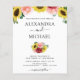 Budget Blush Pink und Gelb Sonnenblumen Rustikale Outdoor Eukalyptus Greenery Foliage Watercolor Spring Wedding Elegant und Moderne Einladungen auf Weißen Hintergrund - beinhaltet schöne und elegante Schrift Typografie mit modernen botanischen Blätter und Grün für die besondere Hochzeitstagsfeier.