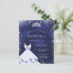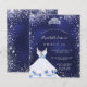 Eine moderne, stilvolle und glamouröse Einladung zu einer Sweet 16. Geburtstagsfeier. Ein dunkelblauer Hintergrund mit Imitaten silberner Glitzer Staub, ein Tiara und ein Kleid. Die blaue Farbe ist ungleichmäßig. Der Name ist mit einem modernen handgeschriebenen Stilskript geschrieben. Personalisieren Sie Ihre Party-Daten und fügen Sie sie hinzu.