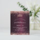 Für einen eleganten Sweet 16, 16. Geburtstag. Ein bordeauxrotes Imitat mit metallisch anmutender Hintergrundfarbe. Dekoriert mit Rose vergoldeten Imitaten Glitzer Staub und ein Tiara, Krone. Personalisieren und fügen Sie Namen, Alter und Party Details hinzu. Der Name wird mit einem handgeschriebenen Stilskript geschrieben