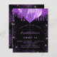 Für einen eleganten Sweet 16, 16. Geburtstag. Ein stilvoller schwarzer Hintergrund. Dekoriert mit lila Imitaten Glitzer und Ballons. Personalisieren und fügen Sie Namen, Alter und Party Details hinzu. Der Name wird mit einem handgeschriebenen Stilskript geschrieben