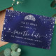 Eine gmädchenhafte und trendige Save the Date-Karte für eine Sweet 16, 16. Geburtstagsfeier. Ein marineblau unebenfarbiger Hintergrund. Dekoriert mit Imitaten silbernen Glitzer Staub und ein Tiara, Krone. Der Text: Save the Date ist mit einem großen angesagten, handgeschriebenen Stilskript geschrieben.