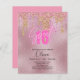 Hübscher Glamour Mädchen ist das Wesen dieser Imitate rosa und goldene Glitzer Folie süß 16, sechzehnte Mädchen Geburtstagsfeier Einladung. Textvorlagenfelder beiderseits ermöglichen es Ihnen, UAwg, Gift-Registrierung und alle weiteren lieblichen16-Party-Ereignisdetails bei Bedarf einzubinden.