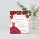 Eine moderne, stilvolle und glamouröse Einladung zu einer Sweet 16. Geburtstagsfeier. Weißer Hintergrund mit Glitzern, rotes Kleid und rote Rosen, Blumenmuster. Der Name ist mit einem modernen handgeschriebenen Stilskript geschrieben. Personalisieren Sie Ihre Party-Daten und fügen Sie sie hinzu.