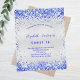 Für eine angesagte Sweet 16, 16. Geburtstagsfeier. Ein Imitat silber metallisch aussehender Hintergrund. Dekoriert mit königsblauen Imitaten Glitzer. Personalisieren und fügen Sie einen Namen und Party-Details hinzu. Der Name wird mit einem handgeschriebenen Stilskript geschrieben