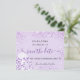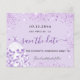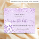 Eine gmädchenhafte und trendige Save the Date-Karte für eine Sweet 16, 16. Geburtstagsfeier. Violett, lavendelfarbener Hintergrund mit Imitaten Glitzer Staub und Kleid. Personalisieren und fügen Sie Datum und Name/Alter hinzu. Schwarz-violett-Buchstaben. Der Text: Save the Date ist mit einem großen angesagten, handgeschriebenen Stilskript geschrieben.