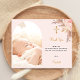 Eine moderne und elegante Taufe danke Ihnen Karte. Der Hintergrund ist rot und mit Blumen und Pampas-Gras geschmückt. Personalisieren und fügen Sie Ihr Foto des Kindes in den Bogen Rahmen, vielen Dank für Ihre Notiz und Name.