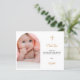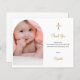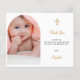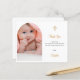 Eine moderne und elegante Taufe danke Ihnen Karte. Ein schick weißer Hintergrund. Personalisieren Sie und fügen Sie Ihr Foto des Kindes, danke Ihnen Notiz und Name. Geschlechterneutral. Richten Sie den Rahmen des Fotos aus. Diese Karte ist auch in unserem Geschäft mit einem rot-blauen oder hellblauen Hintergrund erhältlich.