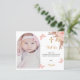Eine moderne und elegante Taufe danke Ihnen Karte. Weiß mit Blumen, Pampas-Gras und Schmetterlingen dekoriert. Personalisieren und fügen Sie Ihr Foto des Kindes in den Bogen Rahmen, vielen Dank für Ihre Notiz und Name.