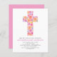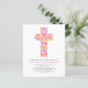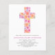 Budget Pastel Rosa, Orange und Lila Blumenarten Blume Kreuz botanische Wasserfarbe Christliche religiöse Taufe Einladungen.