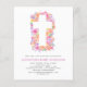 Budget Pastel Rosa, Orange und Lila Frühling Blumenblumen Blume Kreuz botanische Wasserfarbe Christliche religiöse Taufen Einladungen.