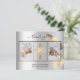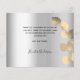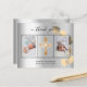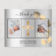 Fügen Sie 2 oder 3 Ihrer Fotos, vertikale Größe, ein Datum, Name, und das Dankeschön Hinweis. Ein silberfarbener Hintergrund mit schwarzem Text und Rahmen, ein goldener Eukalyptus-Srig. Der Text: Vielen Dank auf der Vorderseite und Ihr Name auf der Rückseite sind mit einem stilvollen handgeschriebenen Skript mit Swashes geschrieben.