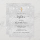 Eine moderne, elegante und minimalistische Taufveranstaltung für Jungen und Mädchen. Imitate silber metallische Hintergrund mit Imitaten Glitzer Staub verziert. Personalisieren und fügen Sie einen Namen und Details. Schwarze Buchstaben.