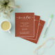 Budget elegante Drehbuch minimalistisch moderne, nicht Foto verbrannte orange erdigen Terrakotta Rost boho Wüste Hochzeit Rettung der Datum Ankündigung personalisiert erschwingliche Low-Budget-Flyer. Einfache, saubere Designvorlage mit einem eleganten, kursiven Schriftsatz, der Schrift "Save the Date" enthält. Diese klassische Karte ist ideal für Paare, die ein traditionelles Save the Date mit einer modernen Touch will, ohne Foto. Wenn Sie Hilfe oder passende Artikel benötigen, wenden Sie sich bitte an den Designer.