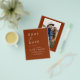 Budget Hochzeit Boho Terracotta Speichern Sie die Date Cards, die ein Foto auf der Vorderseite haben. Die Save the Date-Karten enthalten eine moderne, handgeschriebene, kursive Schriftzeichen-Typografie, die elegant, einfach und modern nach einem einfachen Hochzeitstag-Fest zu verwenden sind.