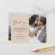 Budget Hochzeit Dankeschön Karten, die ein Foto auf der Vorder- und Rückseite haben. Die Dankeschön-Karten enthalten eine moderne, handgeschriebene, kursive Schriftzeichen-Typografie, die elegant, einfach und modern nach Ihrer Hochzeitsfeier zu benutzen sind.