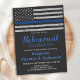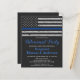 Einladungen für die Polizeieinziehung in Thin Blue Line . Feiern Sie Jahre des engagierten Dienstes und laden Sie Freunde und Familie zu Ihrem Party der Strafverfolgung ein, mit dieser Einladung zur Einberufung der Polizei für die "Thin Blue Line"-Flagge. USA amerikanische Flagge Design in Police Flag Farben, moderne trendige Schwarz-weiß und blau Design. Diese Einladung des Polizeibeamten zur Pensionierung ist auch perfekt für die Einladungen der Polizeiakademie, den Umzugsplatz für Personalisierung. Sehen Sie sich unsere Kollektion an, um die Geschenke der Polizei für den Ruhestand, die Gastgeschenke für den Polizeidienst und die Vorräte zu finden. COPYRIGHT © 2021 Judy Burrows, Black Dog Art - Alle Rechte vorbehalten. Thin Blue Line Polizeibeamte Party Einladung für Altersvorsorge Postkarte
