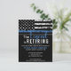 Dieses Design verfügt über eine Polizeiflagge mit schwarz-weißen Streifen und einen dünnen blauen Streifen. Der Text "The Legend is Retiring" setzt sich vor allem aus den Party für den pensionierten Strafverfolgungsbeamten, Sheriff, Kapitän oder Chefs des Party für das Ruhestand zusammen.