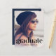 Diese stilvolle Abschluss-Ankündigung ist eine preisgünstige Option, um die Leistungen Ihres Absolventen anzukündigen. Sie beinhaltet das Foto Ihres Absolventen, "Graduate", geschrieben in einem trendigen Typ Typografie mit einzigartigen Linien und seinem Namen, Schule und Klassenjahr. Auf der Rückseite fügen Sie eine zusätzliche Foto und personalisierte Nachricht in schlichter weißer Typografie auf dunkelblauem Hintergrund hinzu.