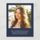 Diese stilvolle Abschluss-Ankündigung ist eine preisgünstige Option, um die Leistungen Ihres Absolventen anzukündigen. Sie beinhaltet das Foto Ihres Absolventen, "Graduate", geschrieben in einer trendigen Typografie mit einzigartigen Linien und seinem Namen, Schule und Klassenzimmer. Fügen Sie auf der Rückseite ein zusätzliches Foto und eine personalisierte Nachricht in schlichter weißer Typografie auf dunkelblauem Hintergrund hinzu.