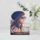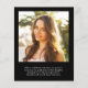 Diese stilvolle Abschluss-Ankündigung ist eine preisgünstige Option, um die Leistungen Ihres Absolventen anzukündigen. Sie beinhaltet das Foto Ihres Absolventen, "Graduate", geschrieben in trendiger, weißer Typografie mit einzigartigen Linien und seinem Namen, seiner Schule und seinem Jahr. Fügen Sie auf der Rückseite ein zusätzliches Foto und eine personalisierte Meldung in schlichter weißer Typografie auf schwarzem Hintergrund hinzu.