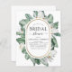 Das Budget Tropical Magnolia Blume mit Blumengarten Palm und Imitate Gold Foil Geometric Border Spring oder Summer Wedding Bridal Shower Einladungen - beinhaltet schöne und elegante Drehtypografie mit modernen tropischen botanischen Blume und Grün für die besondere Braut zu sein zu feiern.