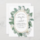Das Budget Tropical Magnolia Blume mit Blumengarten Palm und Imitate Gold Foil Geometric Border Spring oder Summer Wedding Einladungen - beinhaltet schöne und elegante Schrift Typografie mit modernen tropischen botanischen Blume und Grün für die besondere Hochzeitstag-Feier.
