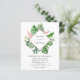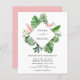Budget Tropical Green Palm Blätter und Blush Pink Blume Wasserfarbe mit Imitate Rose Gold Foil Geometric Form Frühjahr oder Sommer Hochzeit Einladungen - beinhaltet schöne und elegante Drehtypografie mit modernen tropischen botanischen Blume und Grün für die besondere Hochzeitstag-Feier.