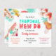 A budget price smaller 4.5" x 5.6" paper alternative. Envelopes are an optional extra. This design with a blend of cocktails, florals, leaves and girls having fun so your friends will know exactly what a great time to expect from your tropical beach Hen Party weekend when they receive this vibrant invite in shades of coral, teals, red and greens. The header typography is in a set arty summer motif font in keeping with the occasion and the rest of the text is easily personalised on both sides, with the invitation details on the front and weekend itinerary on the back. You can also change font colors, sizes and styles of the editable text via the Click to Customize Further option should your words need adjusting to fit.