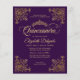 Moderne klassische Elegant Glam Lila Violet Gold Rahmen Prinzessin Tiara 15. Geburtstag Quinceanera Einladung