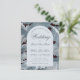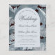Eine preiswerte Hochzeitseinladung, die Vintage und moderne Elemente kombiniert. Auf einem Hintergrund bläulich grauer Akanthus-Blätter auf schwarz (ein Vintages William Morris-Muster, jetzt im öffentlichen Bereich) ist ein weißer Bogen mit Text drin. Das Wort Hochzeit und die Namen sind in einem eleganten kalligrafischen Skript geschrieben, die erste Zeile ist ein gewölbter Text.