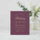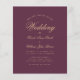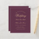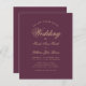 Eine einfache, minimalistische Budget Hochzeitseinladung. Es hat nur goldgelben Text auf der Weinfarbe (nah zu bordeauxrot) Hintergrund. Das Wort Hochzeit und die Namen sind in einem eleganten kalligrafischen Skript geschrieben. "Cinnamon Rose" ist eine moderne, rosa-rote Farbe, ähnlich wie die Bordeaux.