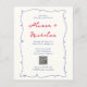 Diese bezaubernde Hochzeitseinladung ist eine reizvolle Mischung aus Launen und Lebhaftigkeit. Die handgezeichnet, scharfe Grenze fügt eine Touch Verspieltheit hinzu, während das Monogramm in elegantem Schriftzeichen eine persönliche Touch verleiht. Die farbenfrohe Farbkombination sorgt dafür, dass Ihre Gäste das Set eines fröhlichen Festes genießen.